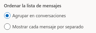 En la sexta opción del menú podemos selecciónar que nos muestre las los mensajes agrupados en conversaciones o cada mensaje por separado.
