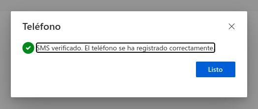 Nos llegará un mensaje SMS al móvil con el código a introducir a continuación.
