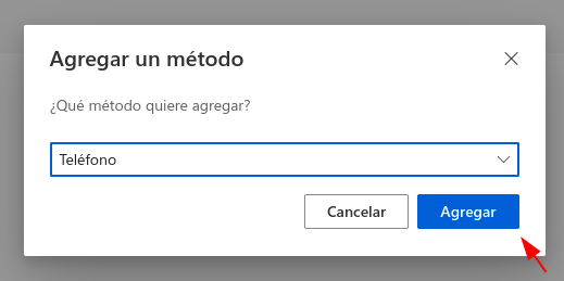 Hacemos click sobre "Agregar método de inicio de sesión"