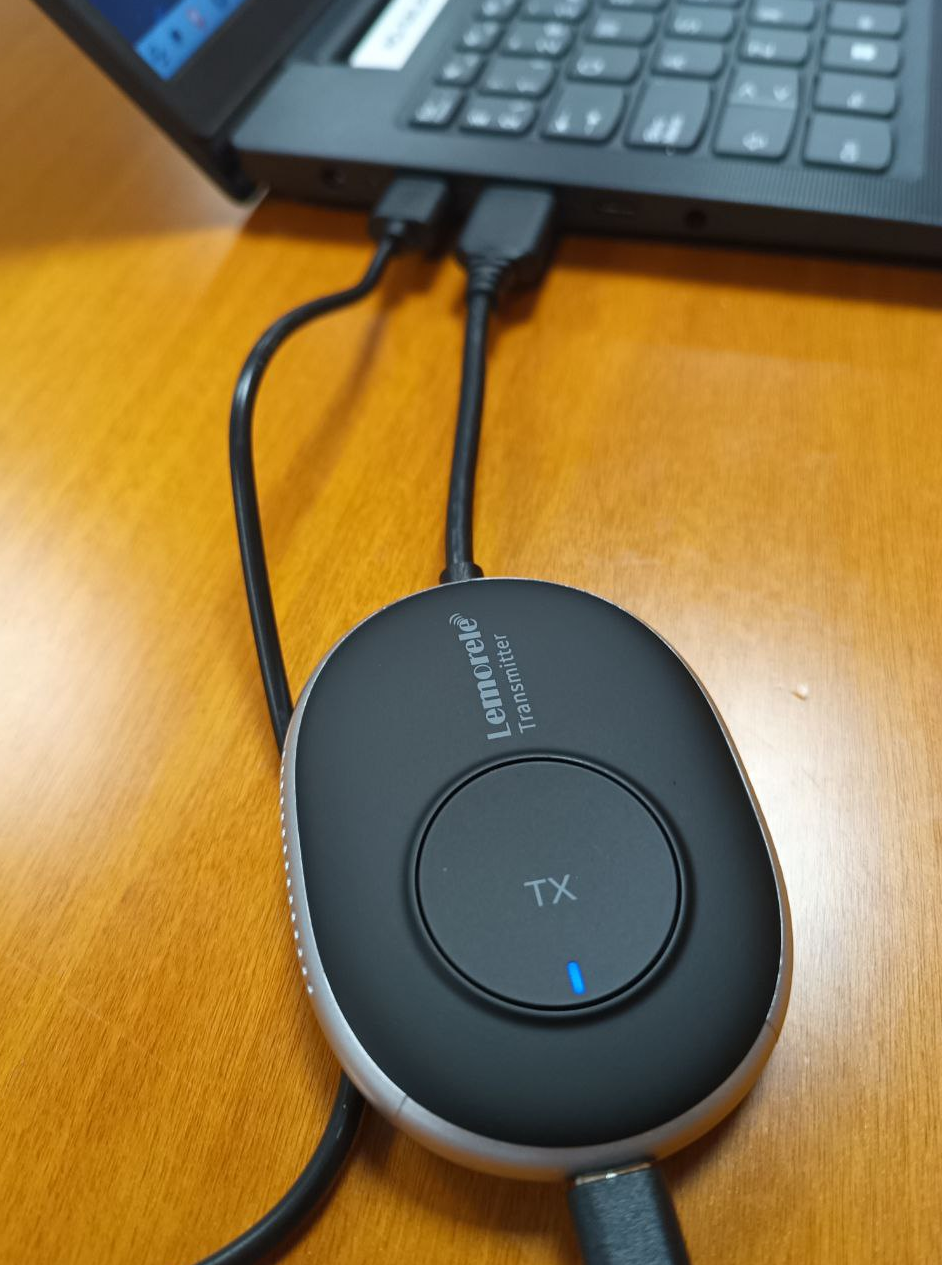 4. Conectaremos el emisor de vídeo inalámbrico a nuestro portátil usando los 2 cables (HDMI y USB):